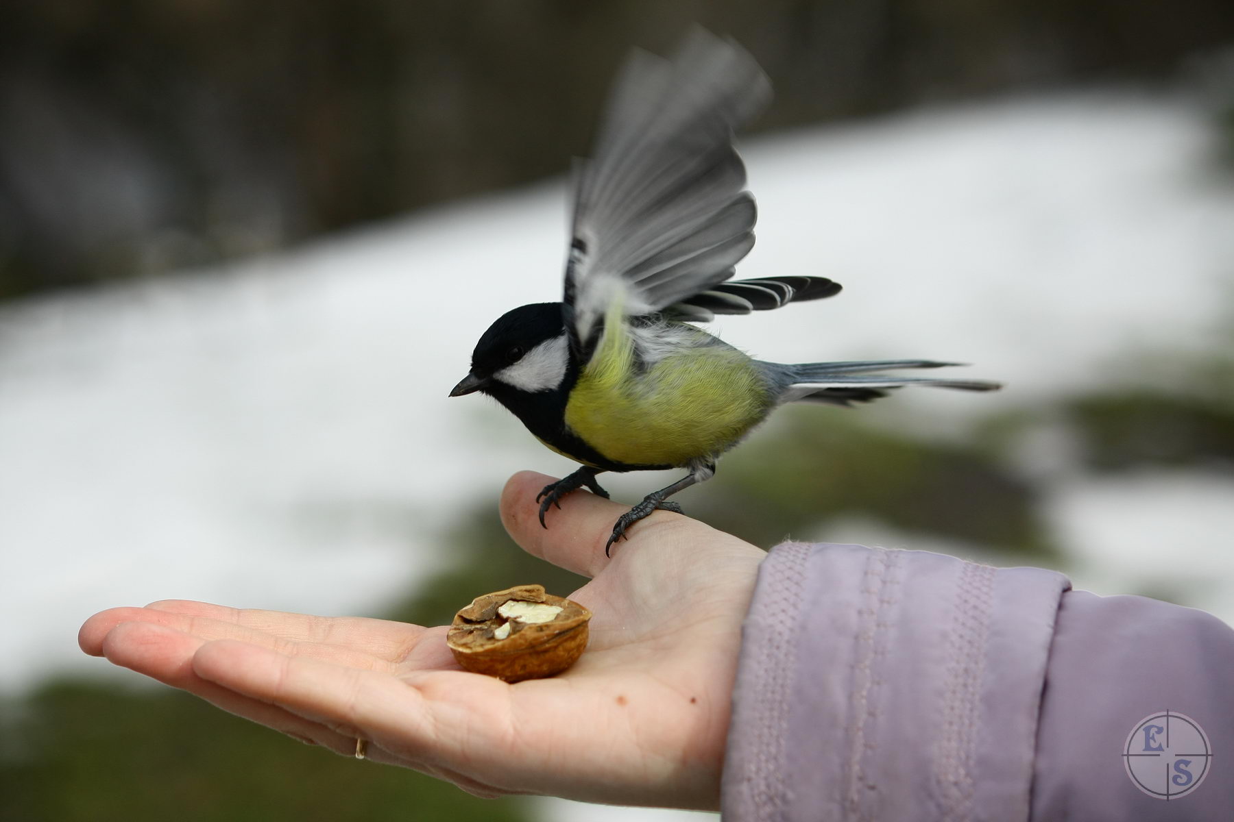 10. Синичка швидко звикає до людини, і її легко можна годувати з руки, особливо взимку.